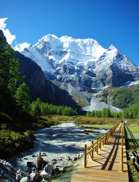 从亚丁村龙同坝徒步约一小时到冲古寺,即可望见仙乃日。仙乃日雪山是亚丁景区三大高峰之首,海拔6032米,因其巍峨雄伟,端庄祥瑞而得名,峰名意为“观世音菩萨”。